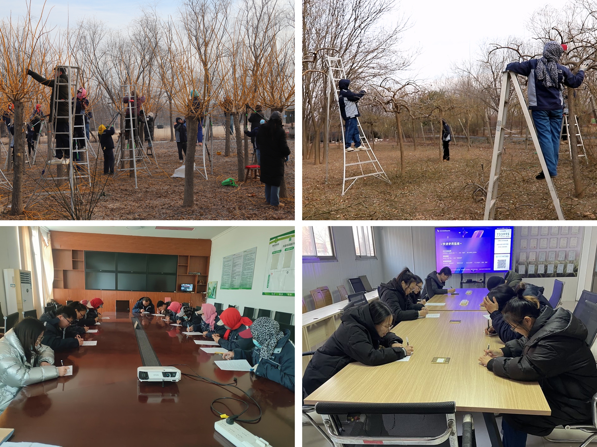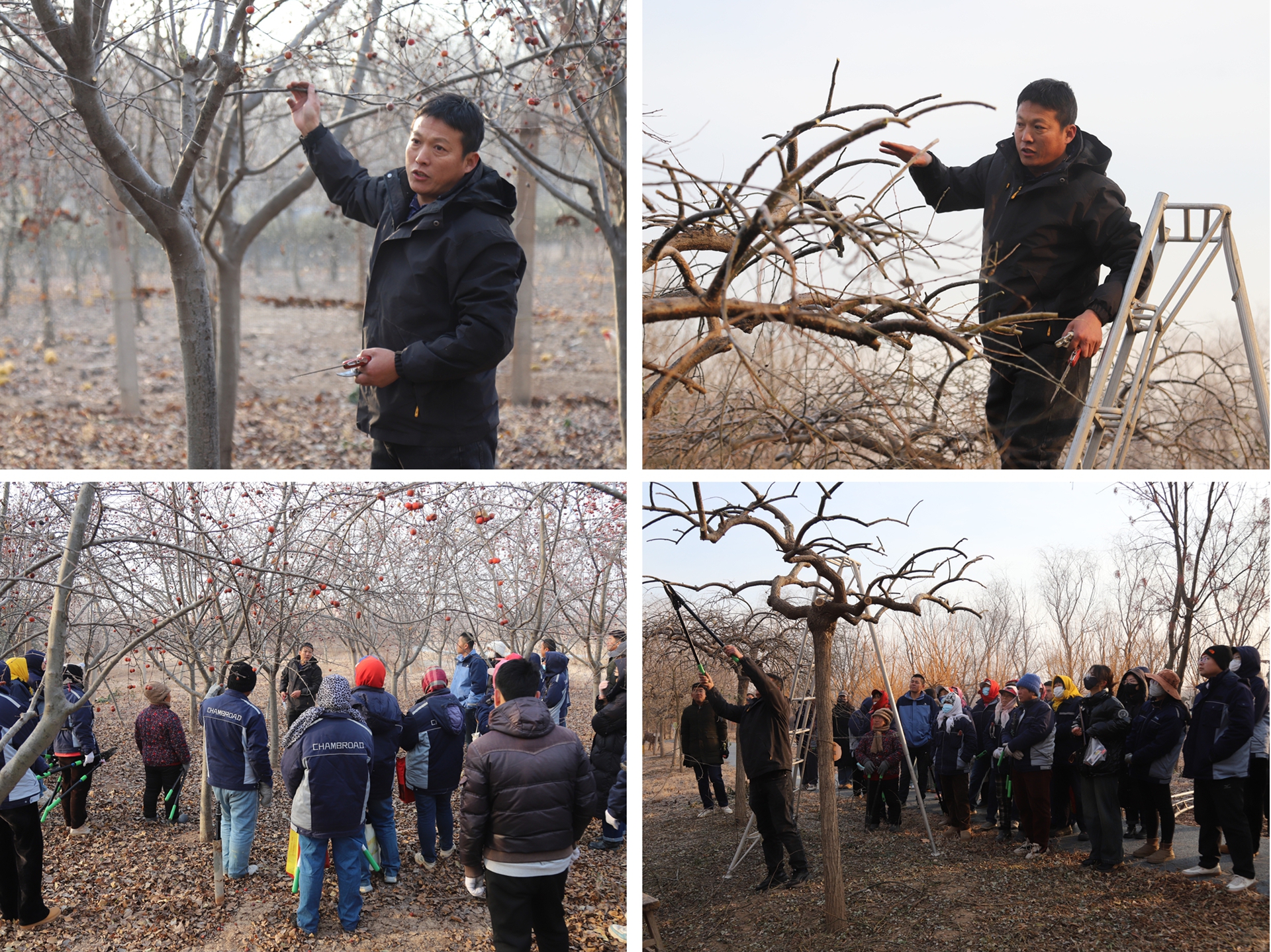12月24日,在博華孔子草花園,博華生產中心技術指導員正在為參加本次冬季苗木修剪技能比武的參賽選手進行現場授課,對修剪的基本原則、方法和技巧進行現場操作示范,并對比本次武評規則進行詳細講解。本次參加比賽的選手涵蓋博華苗木培育基地生產管理員及林場產業工人共計30余人。